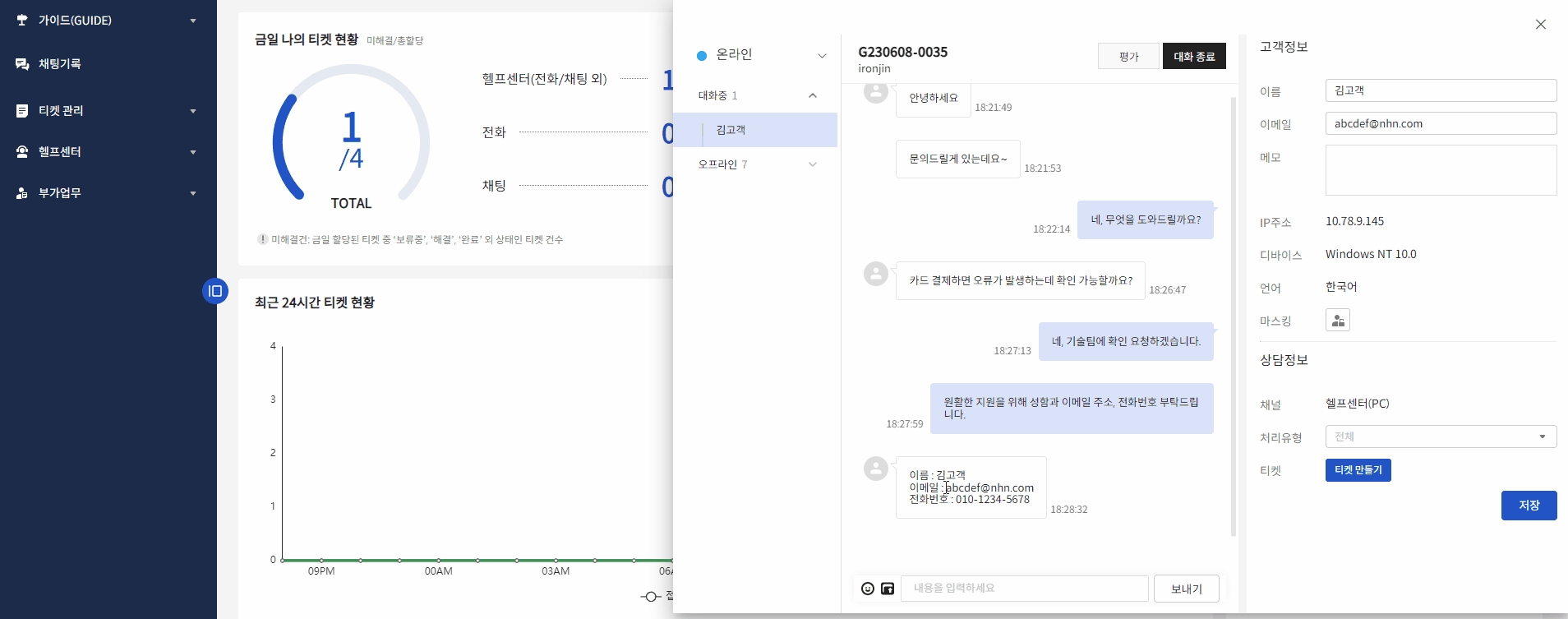 When a ticket needs to be created during a chat session, click the Create Ticket button on the screen. (The created ticket will automatically include a Chat tag.)