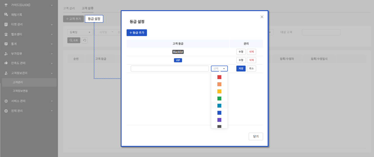 Click the Level Setting button, specify the grade name and color, then click Save to complete the grade creation.