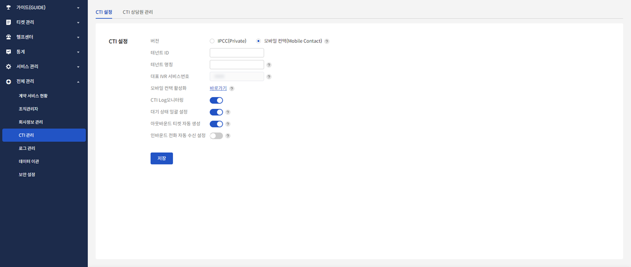 After entering or updating the CTI information, click Save to apply the changes. (CTI information cannot be duplicated between agents.)